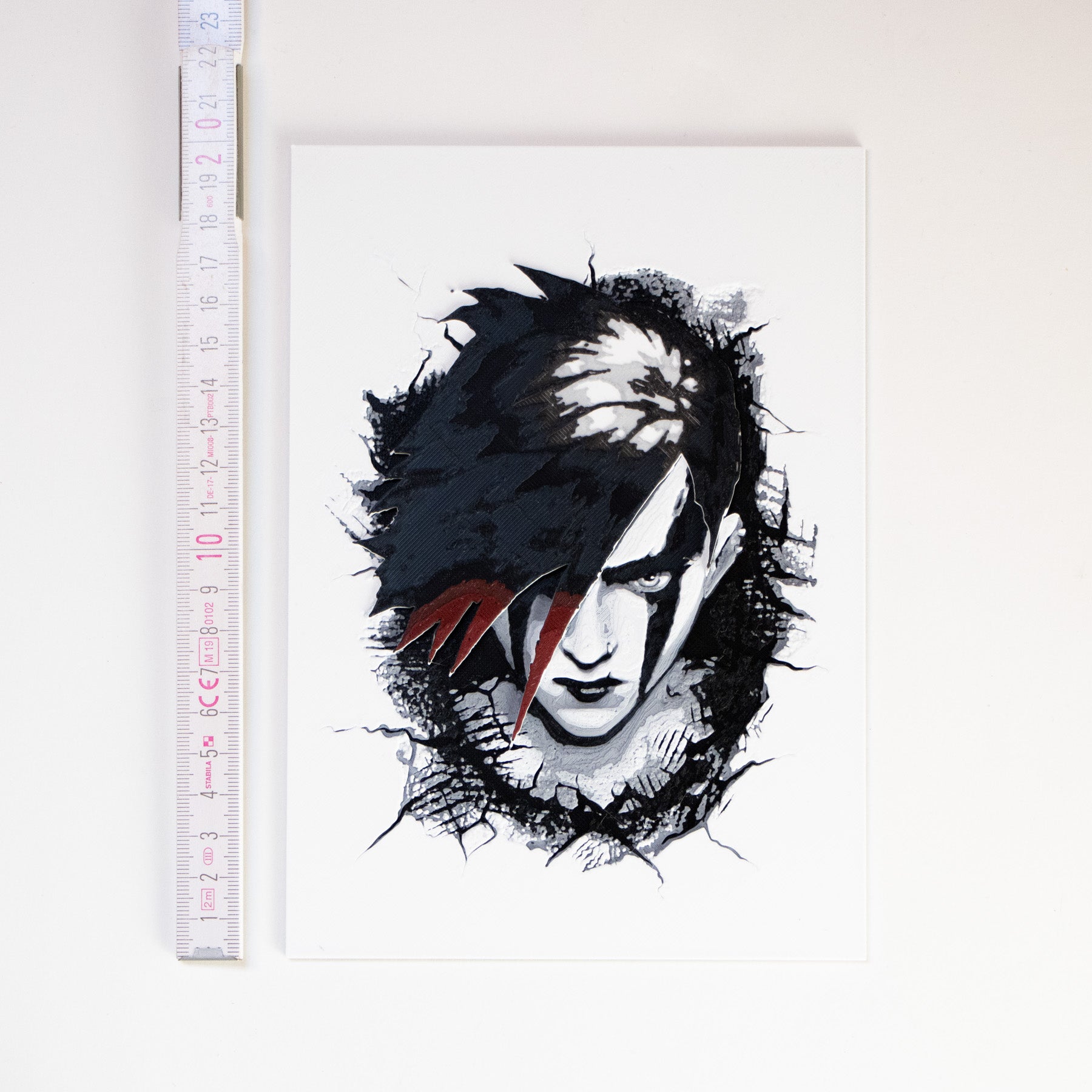 It can be hung on a wall with standard methods, that you would use for posters or acrylic glas prints.